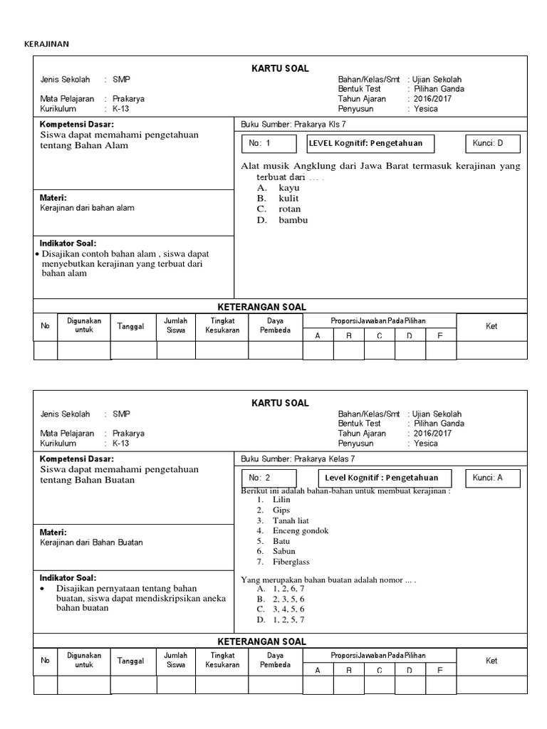 Doc Kartu Soal Pky Kerajinan Rekayasa Docx Kang Dayat Academia Edu from 0.academia-photos.com Soal diatas berisikan 45 soal pilihan ganda, 5 soal essay, dimana soal diatas tidak dilengkapi dengan kunci jawaban, jadi anda harus mencari jawabannya sendiri ya. Setelah postingan sebelumnya tentang soal uas kelas xii bab 3 budidaya dan bab 4 pengolahan. Problematika pembelajaran prakarya dan kewirausahaan di sma negeri 1. Makanan khas daerah adalah… a. Pedoman penilaian keterampilan oleh pendidik dalam kurikulum 2013. Makanan yang biasa di konsumsi di suatu daerah. Blog tentang materi prakarya, perangkat prakarya, dan remidi prakarya tingkat smp. Ujian praktek prakarya dan kewirausahaan kelas xii.